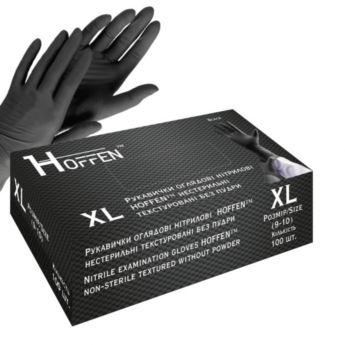 • Нітрілові Hoffen Мedical black нестерильні текстуровані без пудри р.XL
