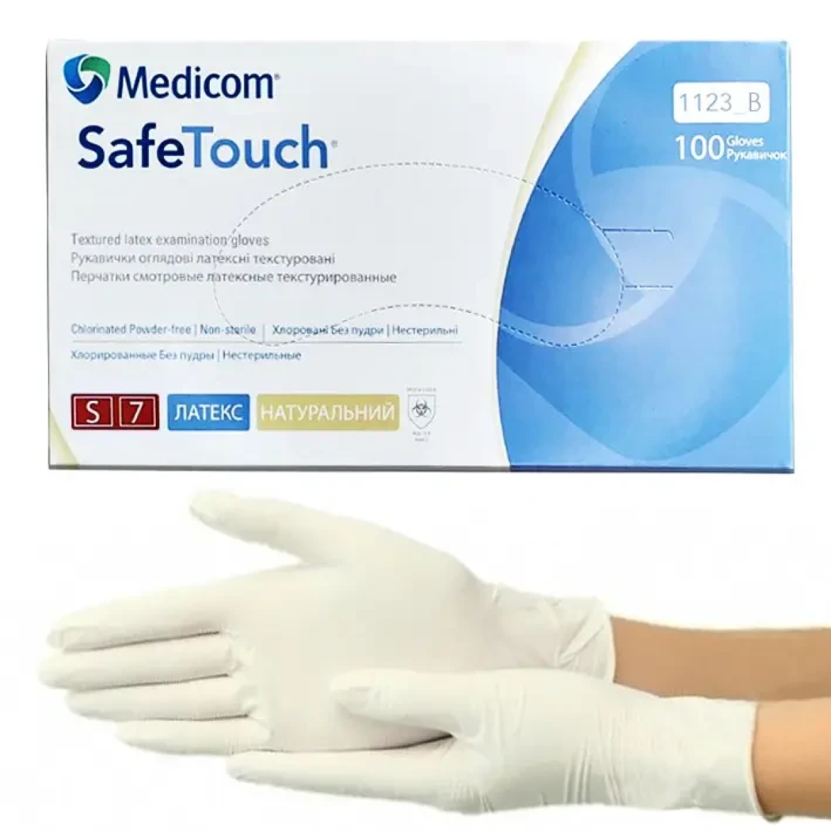 • Рукавички латексні текстуровані без пудри TM Medicom розмір S (100 шт)