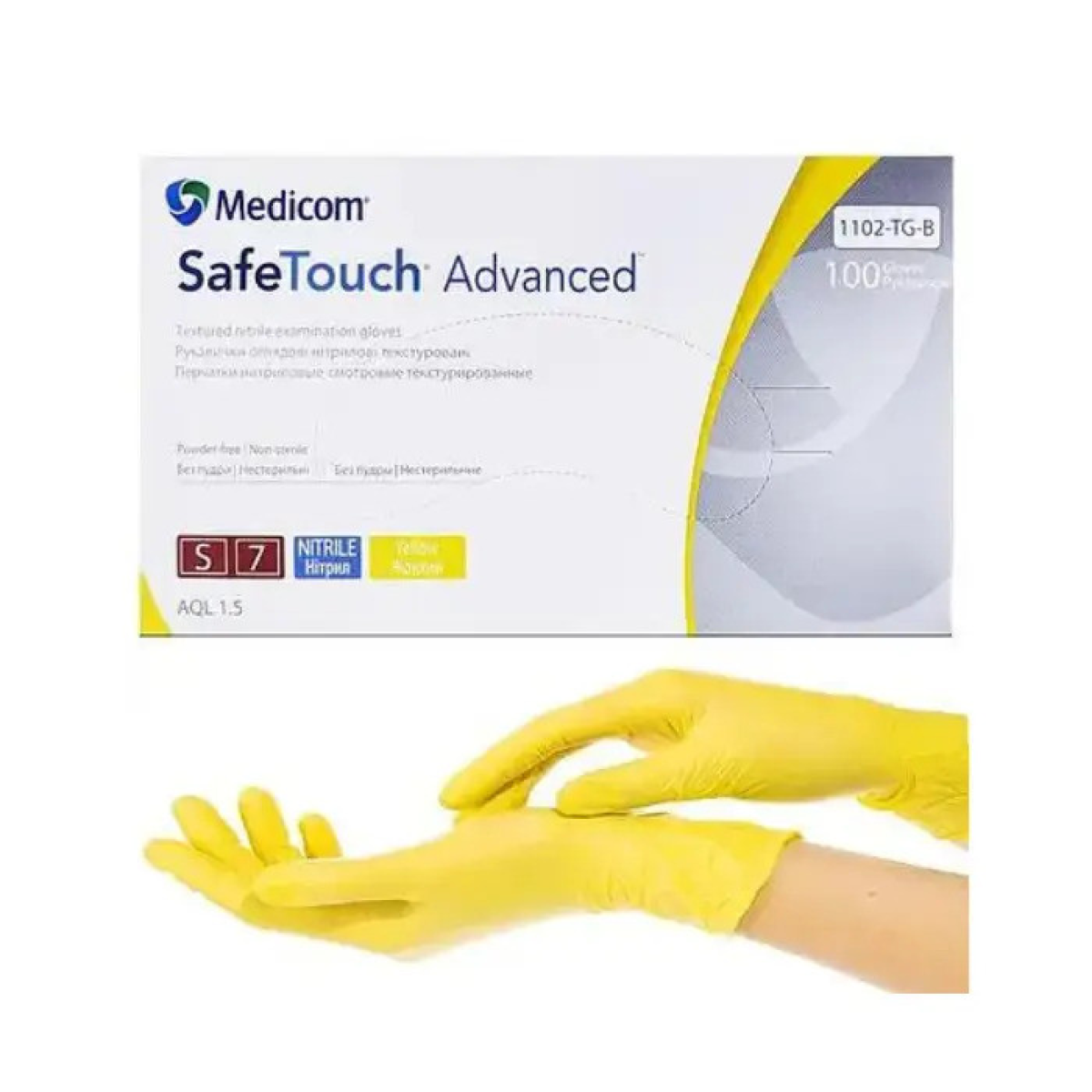 Рукавички нітрилові Medicom SafeTouch Advanced Жовті без пудри - рукавички поєднують у собі всі властивості нітрилу та елегантний колір. Вони добре підходять, коли потрібно поєднання стійкості до хімічних речовин і збереження кольору. Ергономічний дизайн забезпечує щільне облягання рук та підвищує свободу руху, що призводить до зниження втоми. Повністю текстуроване для надійного утримання предметів. Ідеальні для технічних робіт, а також для татуажу та косметології.