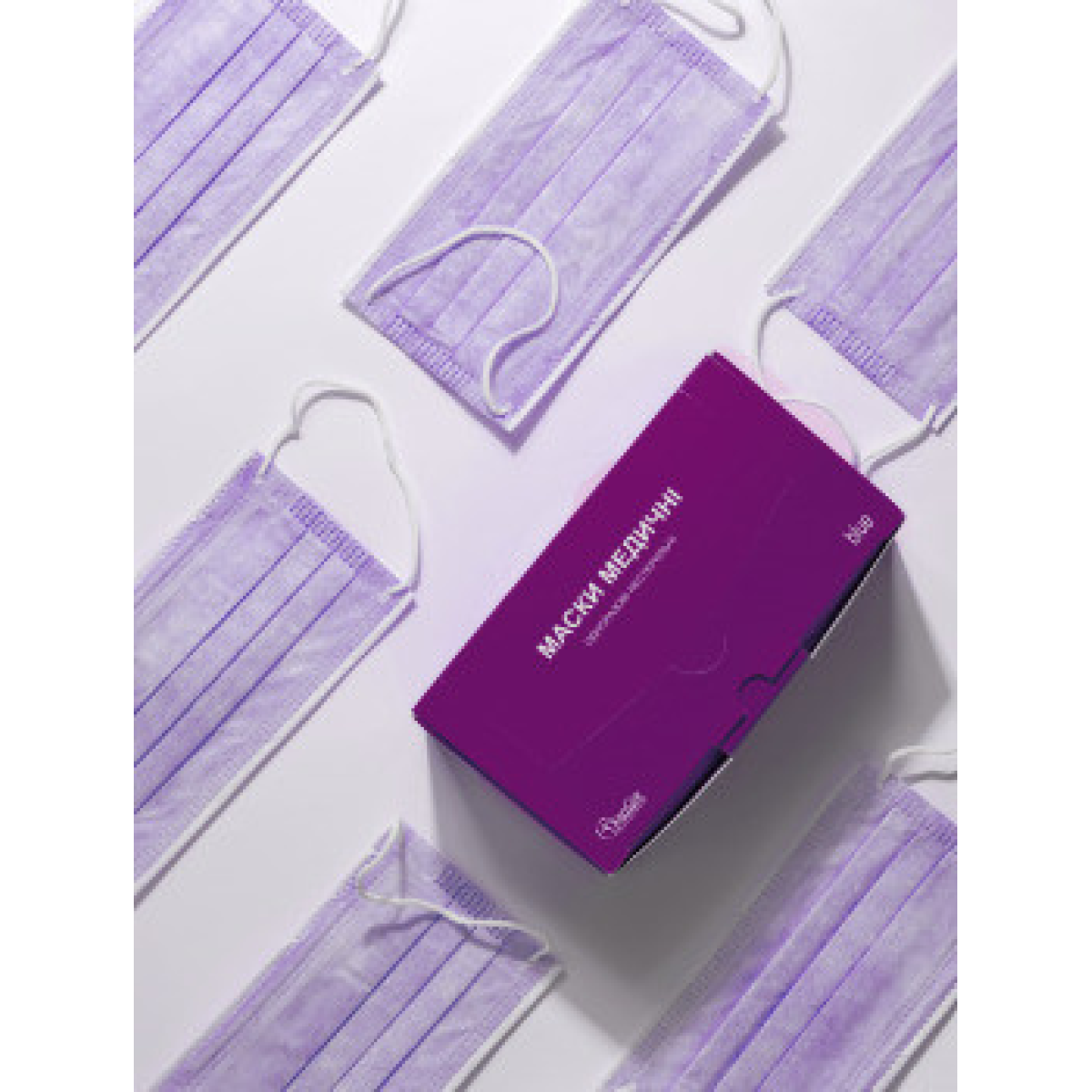 Для виготовлення маски медичної одноразового використання тришарової, використовується високоякісний гіпоалергений, нетканий матеріал, з гумовими завушними петлями і алюмінієвим фіксатором. Без латексу, без запаху. Форма маски три складки, маска з фіксатором на переніссі, щільно прилягає з усіх боків до носа, рота й підборіддя користувача.