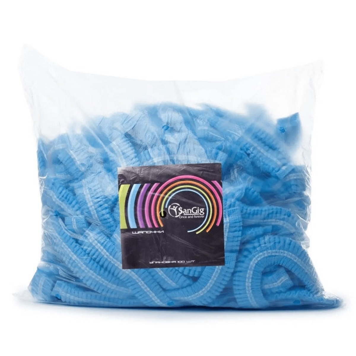 ШАПОЧКА-КУЛЬБАБА З СПАНБОНДУ НА ПОДВІЙНІЙ РЕЗИНЦІ SANGIG 100 ШТ БЛАКИТНА