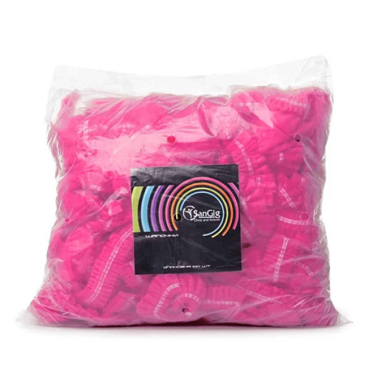 ШАПОЧКА-КУЛЬБАБА З СПАНБОНДУ НА ПОДВІЙНІЙ РЕЗИНЦІ SANGIG 100 ШТ РОЖЕВА