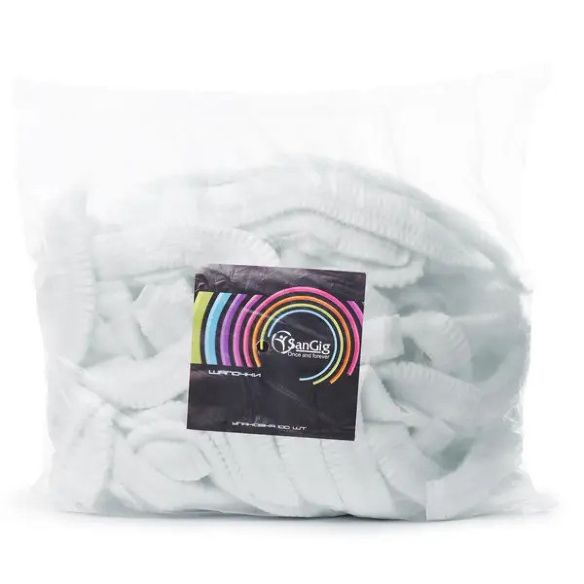 ШАПОЧКА-КУЛЬБАБА З СПАНБОНДУ НА ПОДВІЙНІЙ РЕЗИНЦІ SANGIG 100 ШТ БІЛА
