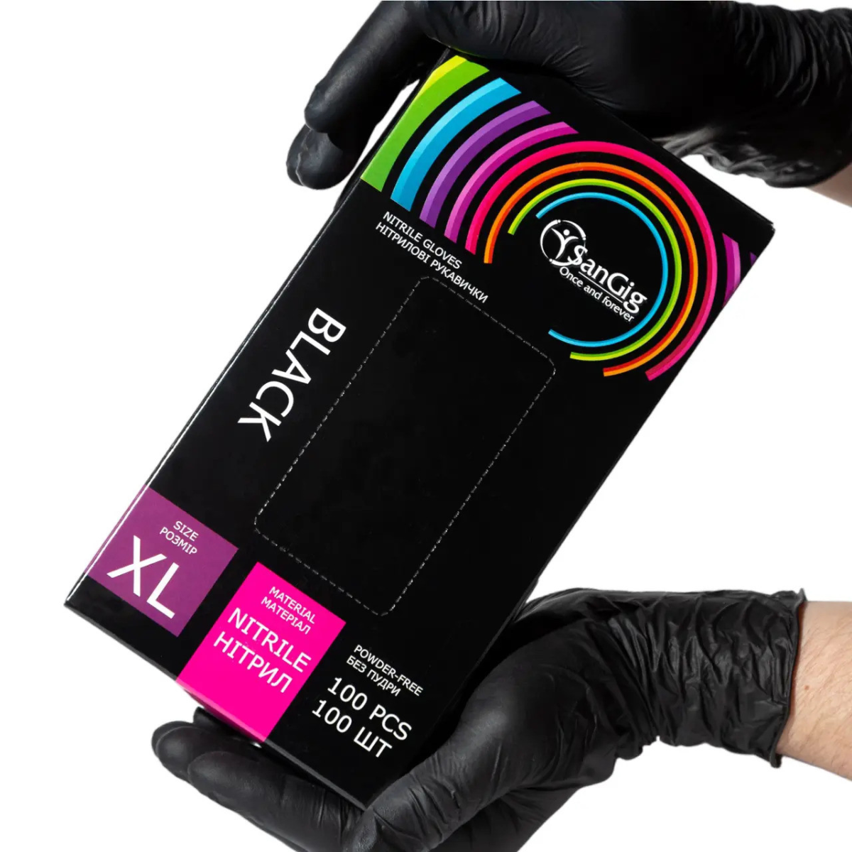 • Рукавички нітрилові розмір XL SanGig, щільність 3.5 г. - Чорні (100 шт)