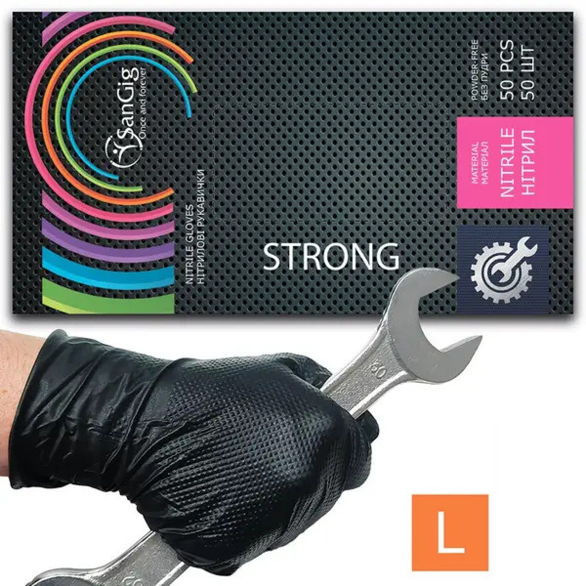Супер міцні рукавички нітрилові SanGig STRONG, - чорні (50 шт)