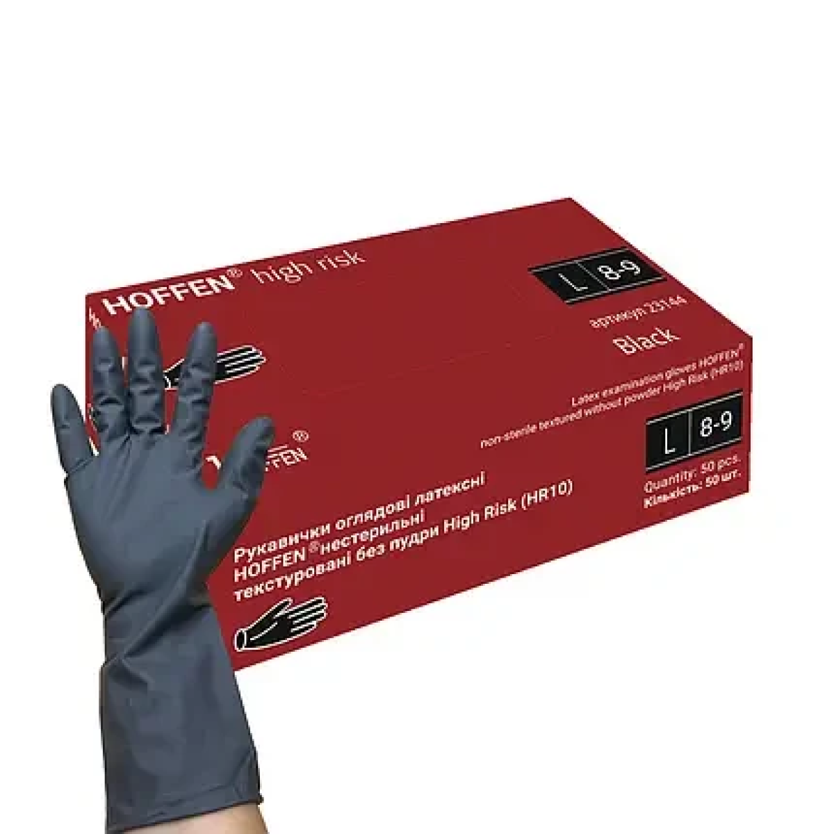 Рукавички L (8-9) Hoffen High Risk Чорні латексні підвищеної міцності (25 пар уп)