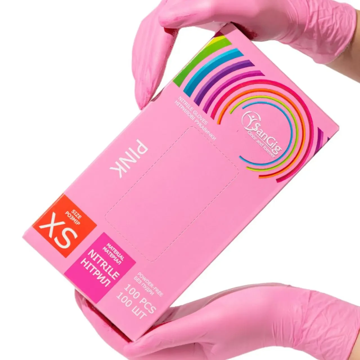 • Рукавички нітрилові SanGig, щільність 3.5 г. - рожеві (100 шт)  XS (5-6)