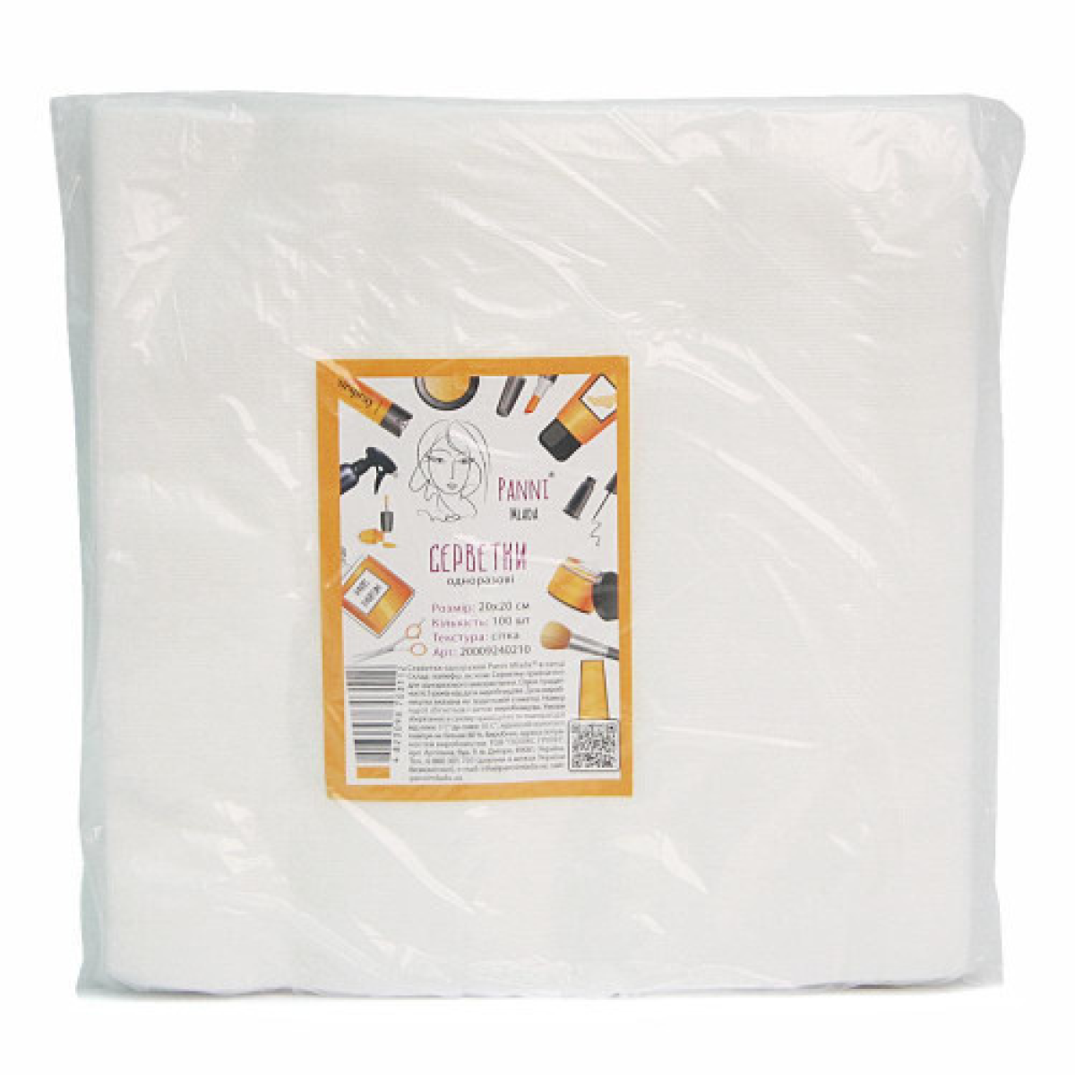 Серветки в пачці зі спанлейсу Panni Mlada 20х20 см (100 шт./пач) текстура сетка