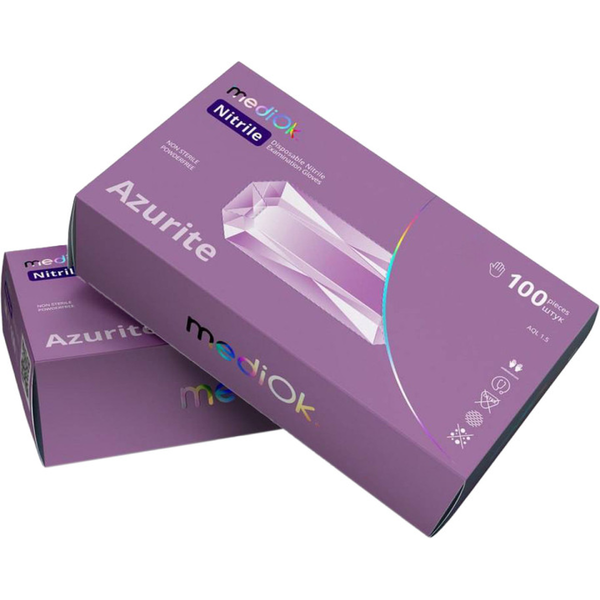 Рукавички нітрилові Mediok Azurite Розмір M 100 шт Світло-фіолетові