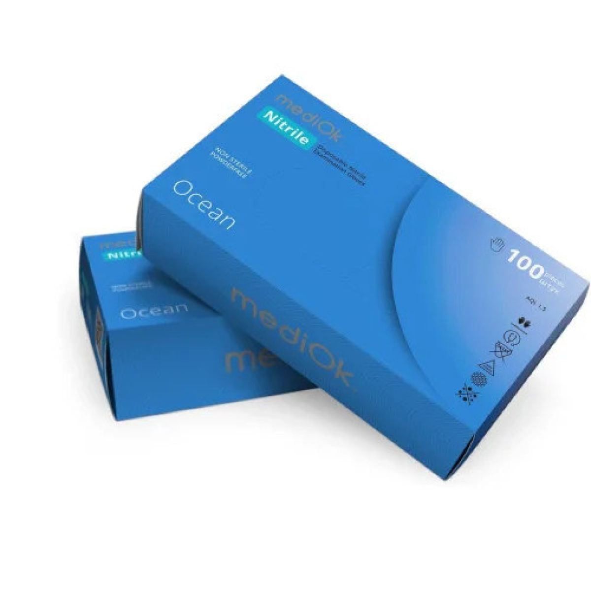 MediOk Рукавички нітрилові неопудрені Ocean  блакитного кольору призначені для дотримання гігієни та захисту рук. Вони можуть використовуватися в умовах підвищеного ступеня інфікування або у роботі з реагентами. Вироби виготовлені з гіпоалергенного синтетичного матеріалу, мають мікрорельєф на кінчиках пальців, стійкі до розривів і проколів.