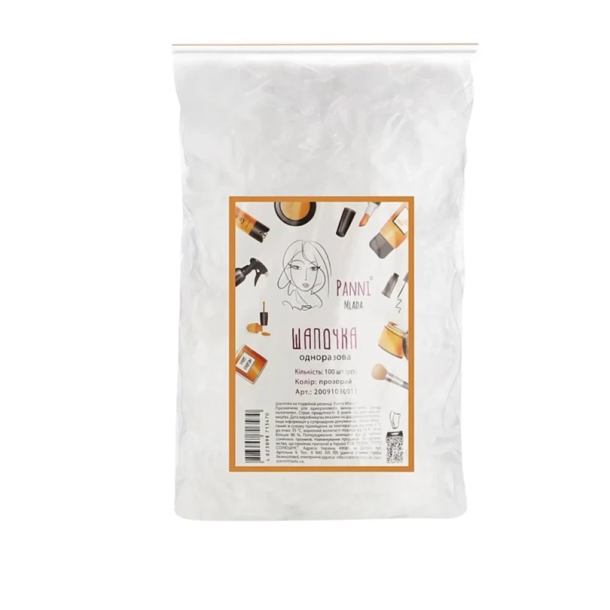 Шапочка на подвійній резинці поліетилен Panni Mlada 100 шт прозора