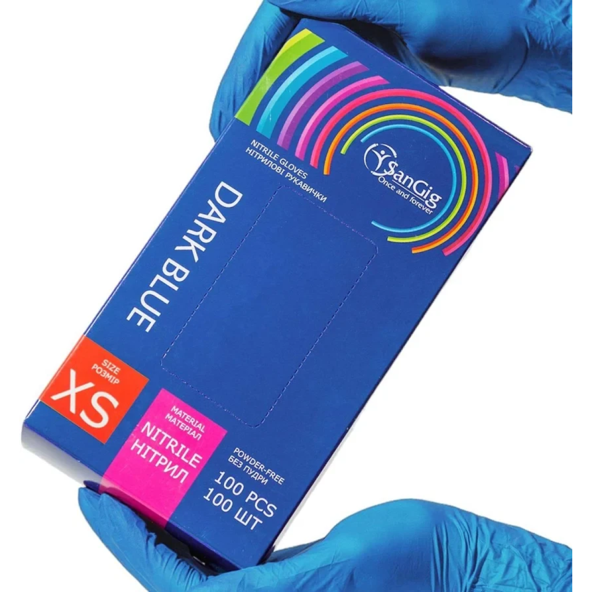 Рукавички нітрилові XS (6-7) SanGig, щільність 3.5 г. - Сині (100 шт)